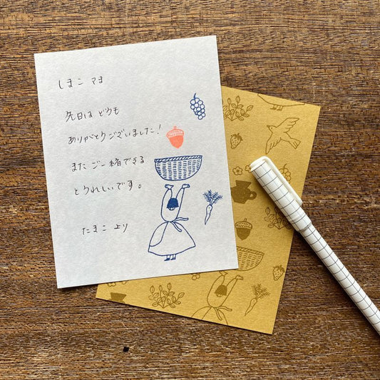 Vol.1では「散歩道」をテーマに、散歩をしながら出会った動物や草花をイメージした様々なパーツのハンコのセットをデザインしていただきました。