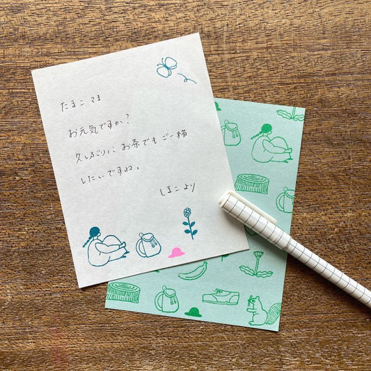 ネクタイ×水縞 小さなレターセット 散歩道 B