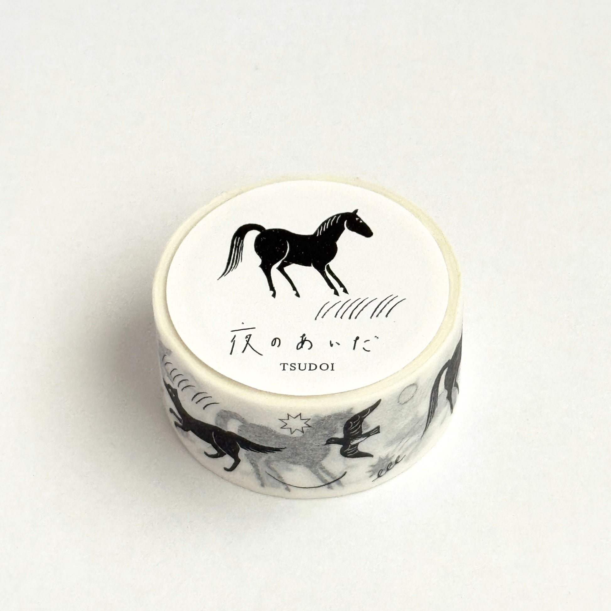 西淑さんの描く夜に集う動物たちが幻想的なモノトーンのマスキングテープです。シックで大人っぽい雰囲気は、お手紙の封緘やジャーナリングのアクセントにと活躍しそうです。