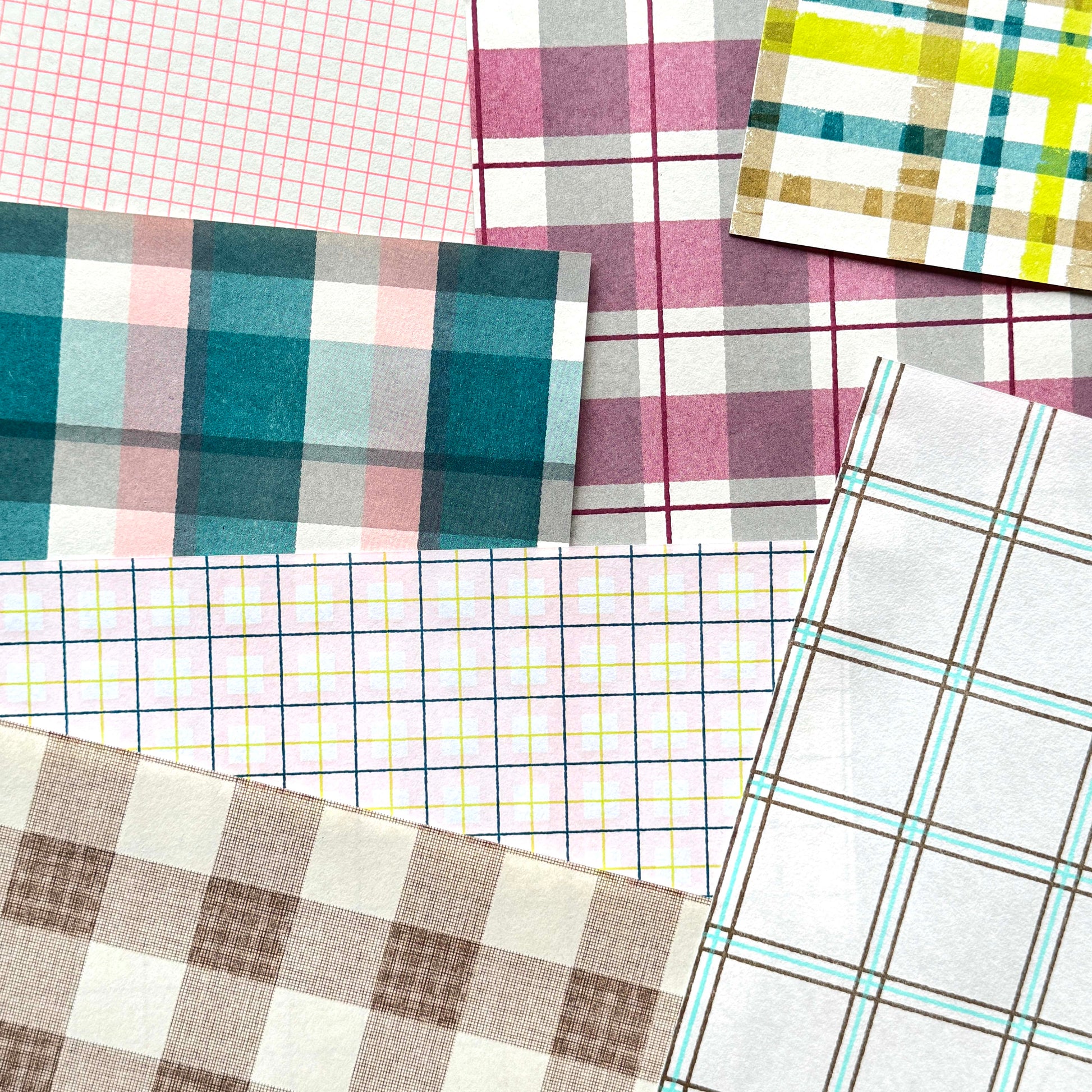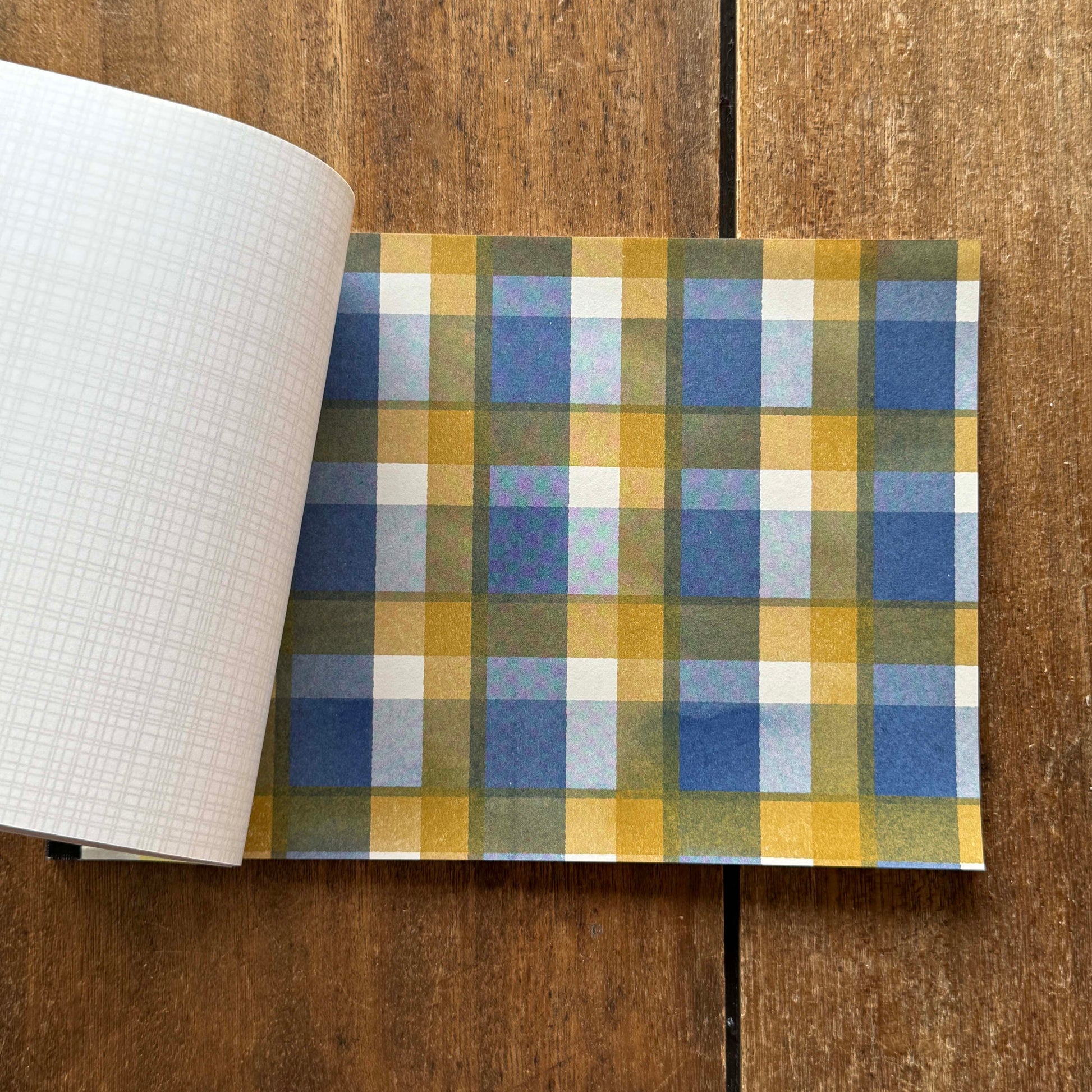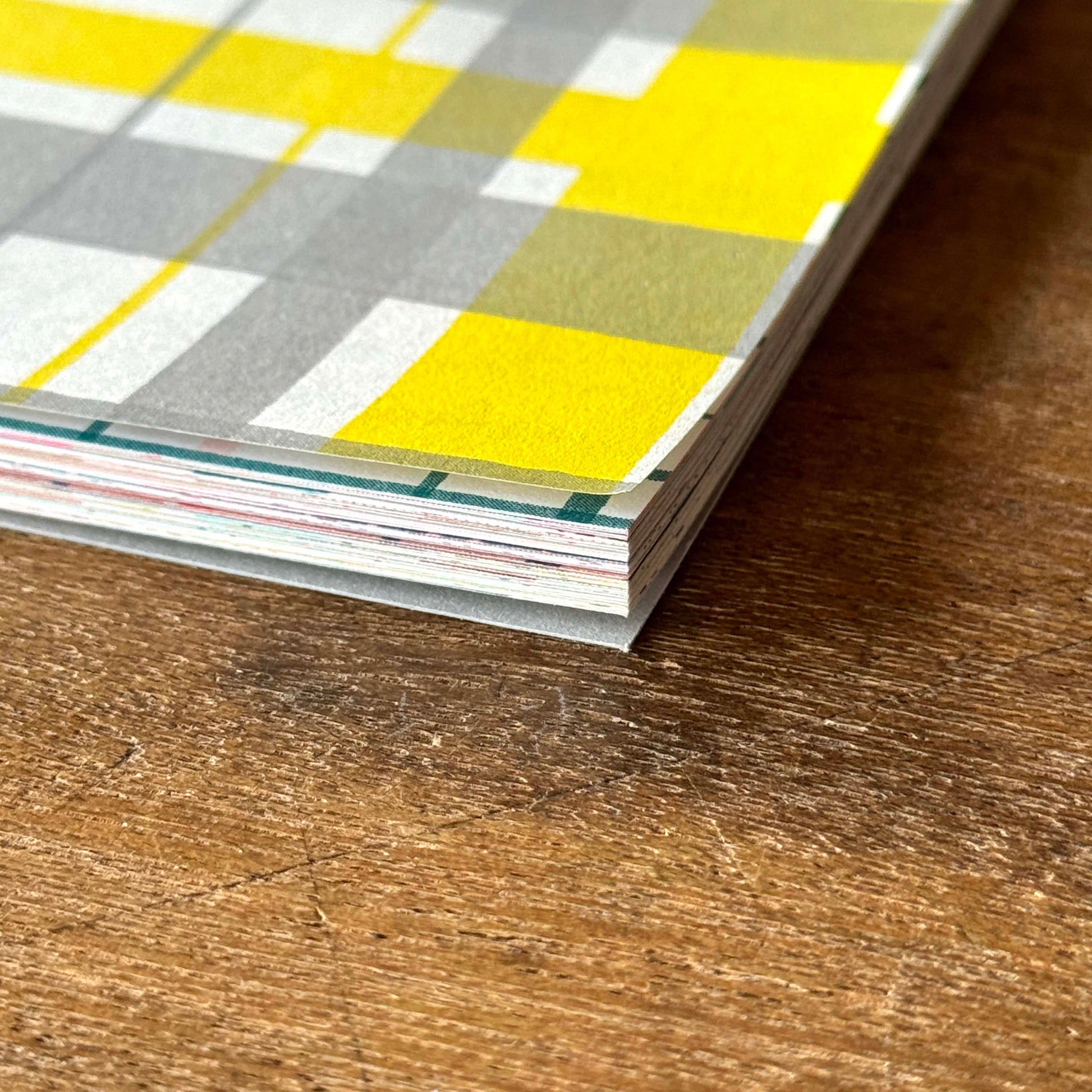 水縞が今までにデザインした色々なグラフィックのかけらを集めたイロイロメモパッドが50柄全部入ったレポートパッドです。「チェック」は、さまざまな幅や色の線をかけ合わせたチェック柄が50柄入っています。イロイロ選べて大きく使えます。ラッピングに手帳にスクラップブックに。たっぷり楽しめる一冊です。